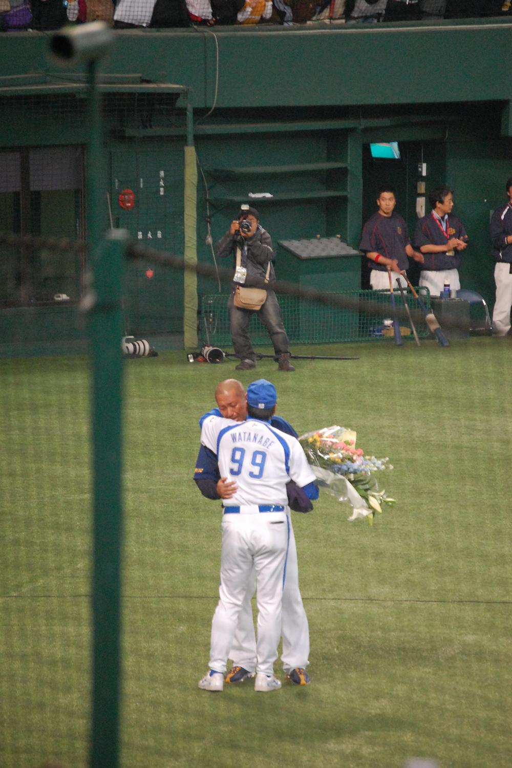 試合終了後、ライオンズ側の粋なはからいで、サプライズがあったわけで。